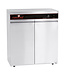 de bordenwarmkast is dubbelwandig en geheel geïsoleerd, voorzien van uitneembare en verstelbare etageplanken en deuren zijn uitgerust met zware scharnieren. Capaciteit 120 borden van max. Ø32 cm