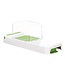 snijdt gemakkelijk en eenvoudig uw producten in blokjes of reepjes, werkt zeer eenvoudig door de bijgesloten opvangbak, wordt compleet geleverd met het geïntegreerd drukstuk, reinigingsrooster en messet van 6x6mm
