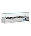 GN maatvoering voor max. 15 cm diep, roestvrijstaal met veiligheidsglas, thermostatisch regelbaar +2°C / +8°C, verlichte hoofdschakelaar, wordt zonder GN bakken geleverd