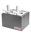 2 delige sauzenbar volledig uit roestvrijstaal met deksel met gat en kunststof drukknopdispenser