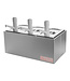 3 delige sauzenbar volledig uit roestvrijstaal met deksel met gat en kunststof drukknopdispensers