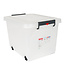 verrijdbaar, praktisch onbreekbaar en voorzien van een goed afsluitbare deksel middels beugels