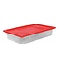 luchtdicht afsluitbaar en absoluut smaak- en reukvrij, geschikt voor vriezer -40°C en magnetron +70°C (zonder deksel), met rode deksel