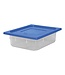 luchtdicht afsluitbaar en absoluut smaak- en reukvrij, geschikt voor vriezer -40°C en magnetron +70°C (zonder deksel), met blauwe deksel