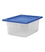 luchtdicht afsluitbaar en absoluut smaak- en reukvrij, geschikt voor vriezer -40°C en magnetron +70°C (zonder deksel), met blauwe deksel