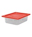 luchtdicht afsluitbaar en absoluut smaak- en reukvrij, geschikt voor vriezer -40°C en magnetron +70°C (zonder deksel), met rode deksel