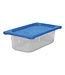 luchtdicht afsluitbaar en absoluut smaak- en reukvrij, geschikt voor vriezer -40°C en magnetron +70°C (zonder deksel), met blauwe deksel